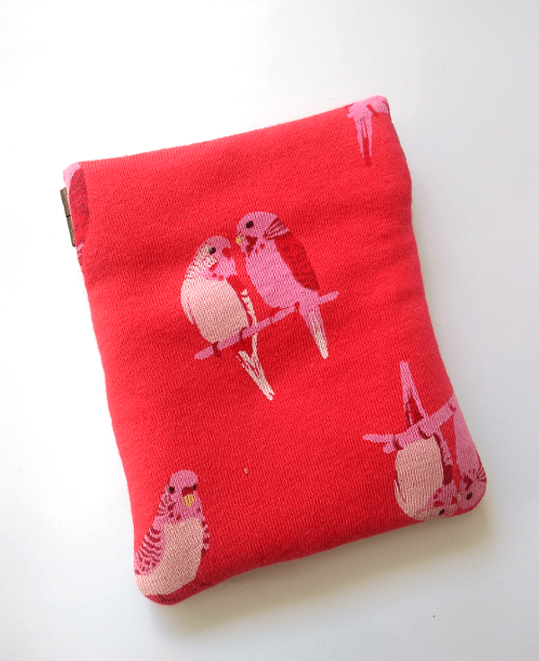 This listing is for a useful pinch purse, fronted with budgies on red fabric, backed with plain natural fabric. The pouch is fully lined in a dusty pink fabric, matching the colour of some of the birds. A flex frame is installed so you just need to pinch the sides to open it and release to close. Internal padding gives some protection to the contents, which is particularly handy if you wish to store earbuds or perhaps jewellery.