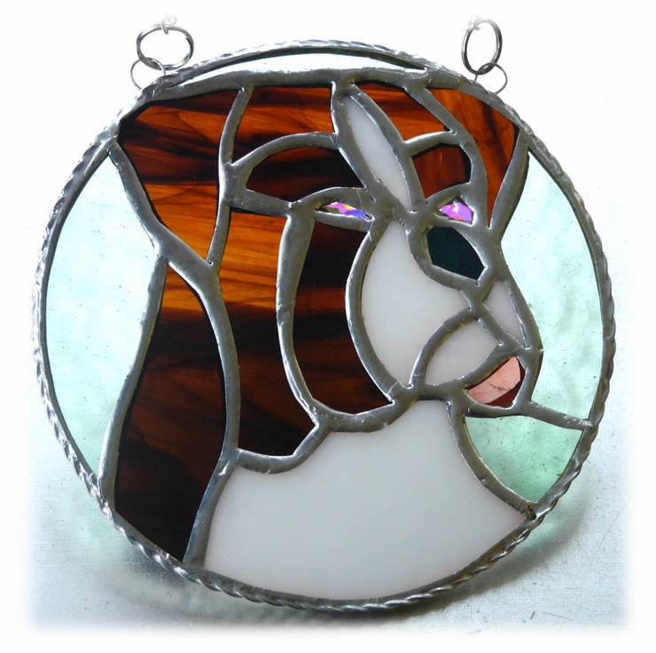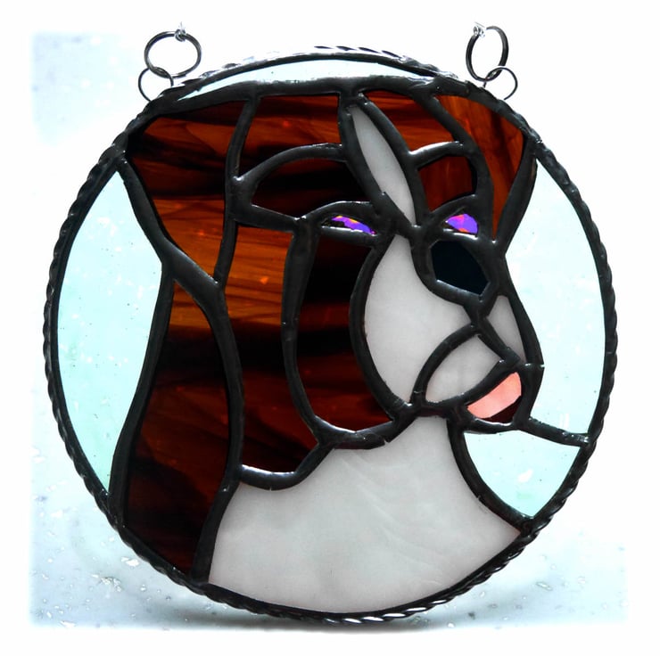 It hangs from a silver chain attached securely to two little rings at the top and like all my suncatchers come supplied with a strong suction hook.
