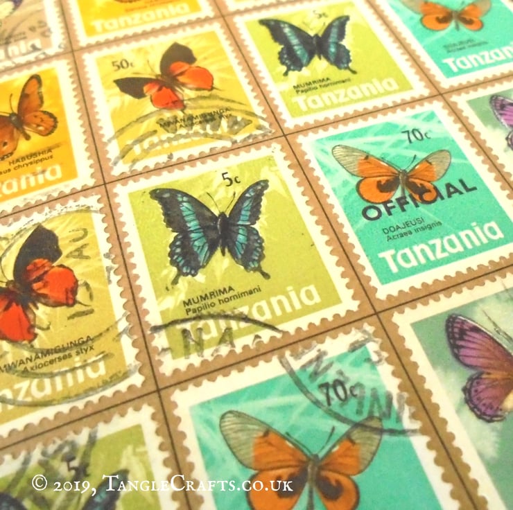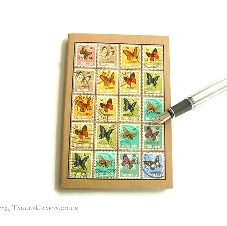 Cover features a rainbow collection of real vintage butterfly postage stamps from Tanzania (circa 1973), A handy, pocket-sized diary notebook for tracking birthdays, anniversaries & appointments, & all your other daily notes!