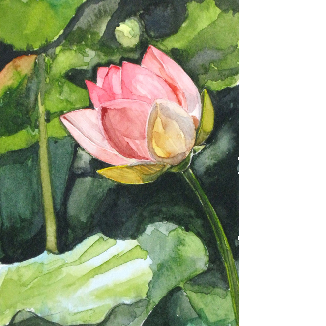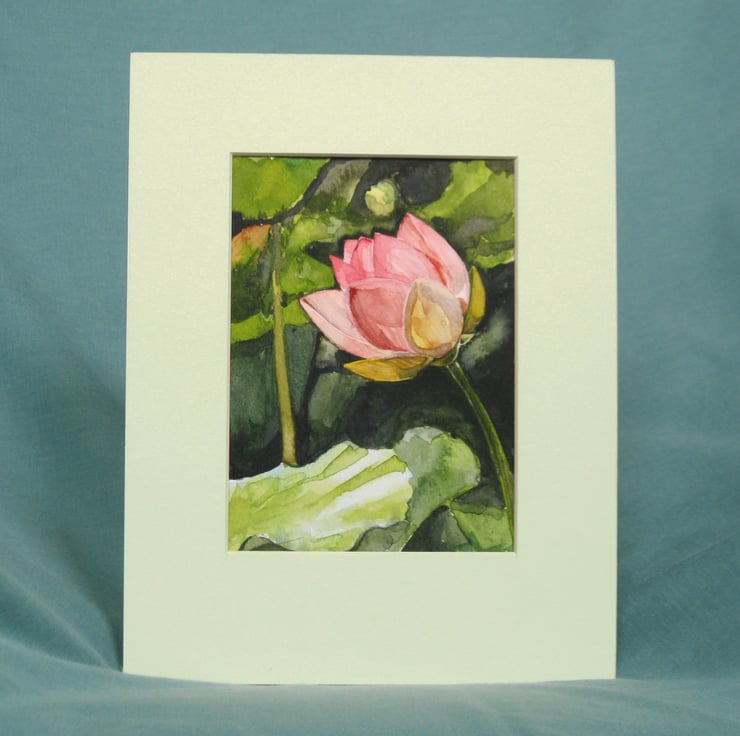 Watercolour painting, 10.2 x 14.2 cm. Supplied window mounted, overall matte size 15.2 x 20.3 cm (6 x 8in). Will fit a standard size frame.