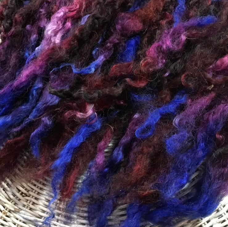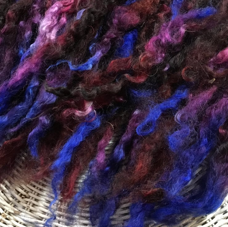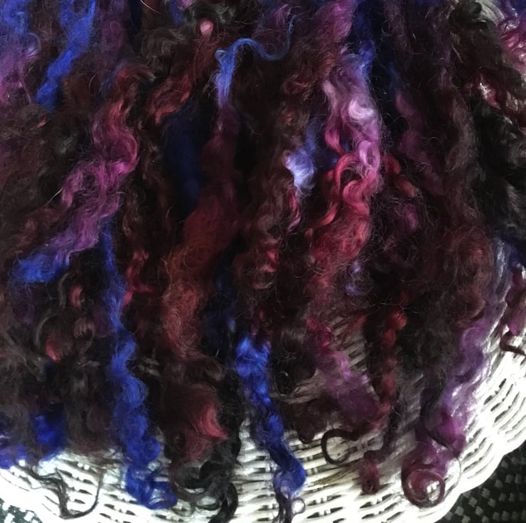 These are very soft British Leicestershire sheep locks, that I have hand sorted, hand washed and hand dyed with eco-friendly dyes in vibrant shades of purples and violet.