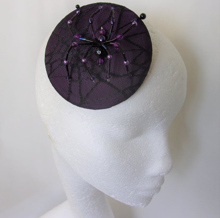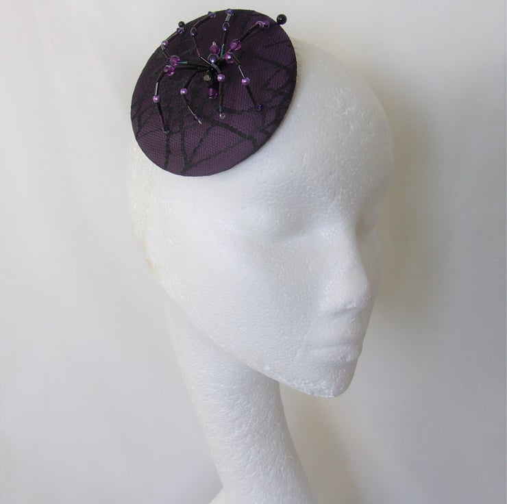 Aubergine Purple & Black Crystal Spider Cocktail Hat Fascinator Mini Headpiece