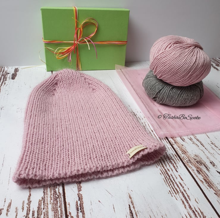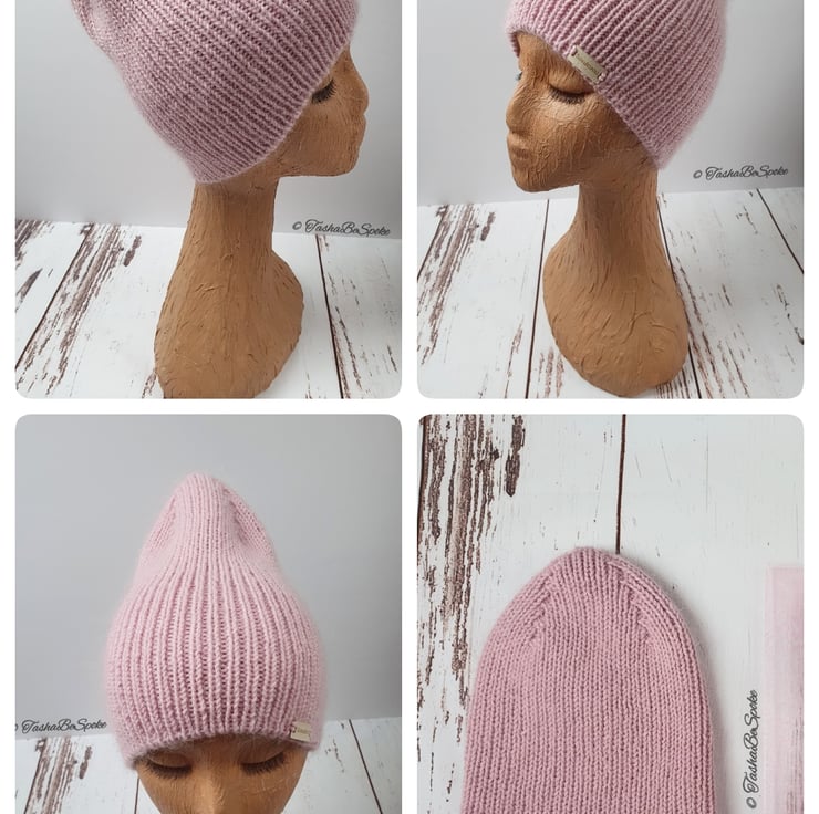 Hand Knit Pink Beanie, Merino Cotton Mohair Blend, 55 - 57 cm, ready to ship