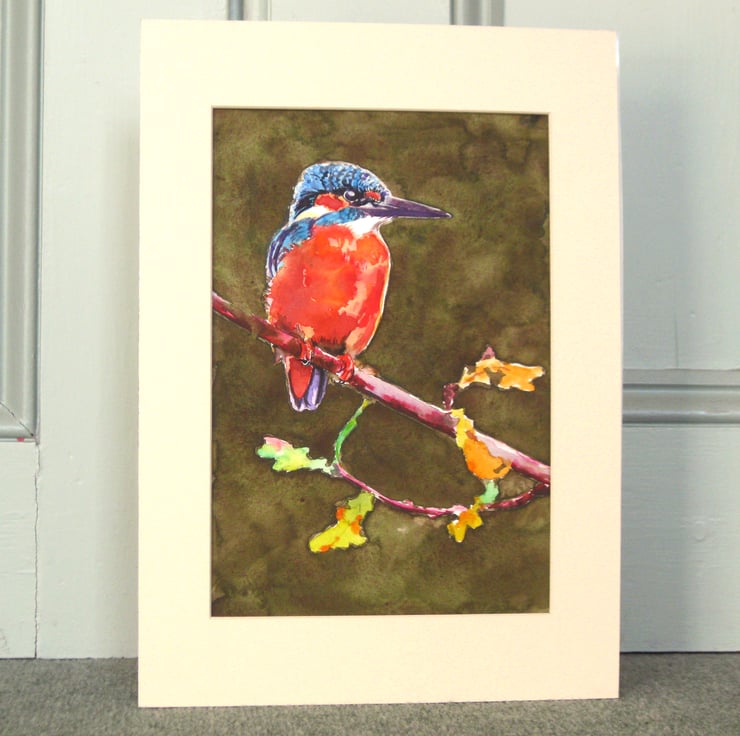 Watercolour painting. Picture dimensions 17.7 x 27.3 cm. Supplied window mounted, overall matte size 25.4 x 35.6 cm (10 x 14in). Will fit a standard size frame.