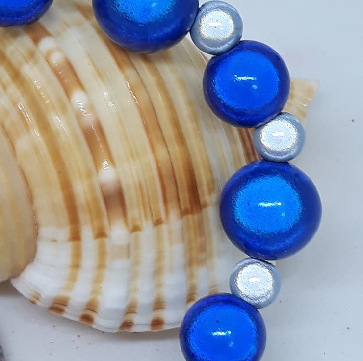 I've used 12mm and 20mm navy blue with contrasting 6mm pale blue beads.