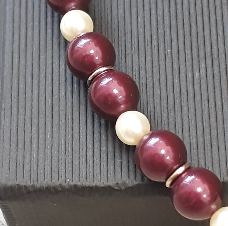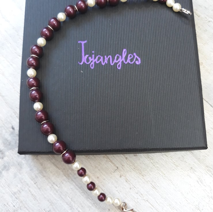 For this special bracelet I have used 6mm Swarovski pearls in a deep purple and 4mm cream pearls finished off with Champagne colour finding.