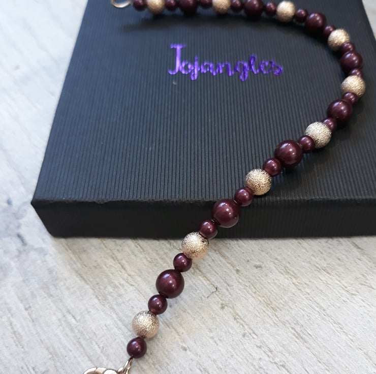 For this special bracelet I have used 6mm and 4mm Swarovski pearls in a deep purple complimented with champagne colour stardust beads.