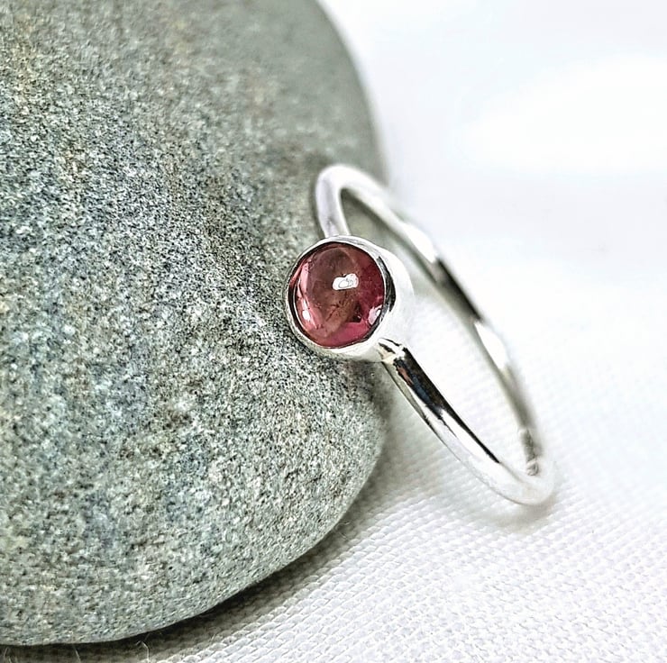 Handmade using 1.5mm sterling silver round wire, this cute little ring features a gorgeous, juicy, 5mm pink tourmaline.