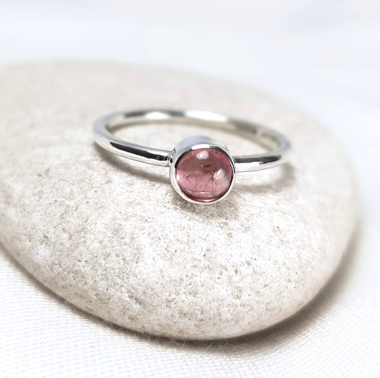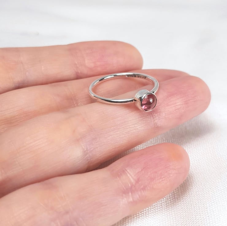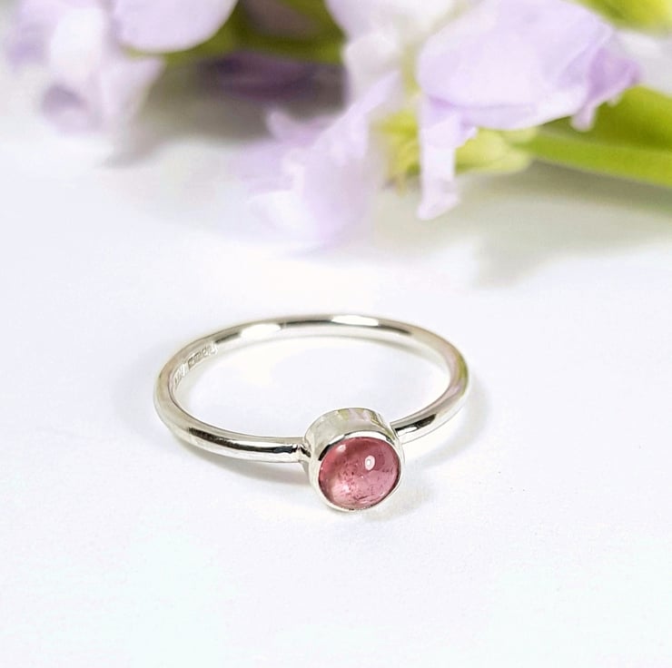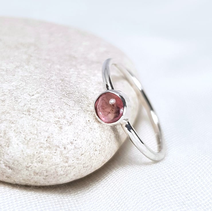 Handmade using 1.5mm sterling silver round wire, this cute little ring features a gorgeous, juicy, 5mm pink tourmaline.