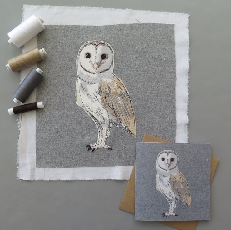 Original fabric appliqué designs which have been scanned, and then printed onto recycled card.