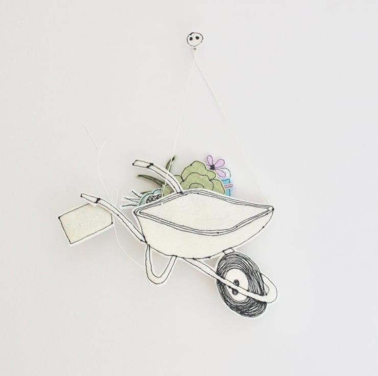 Hang this delightful sewn fabric wheelbarrow, filled with produce, to remind yourself or a friend how abundant allotments can be.