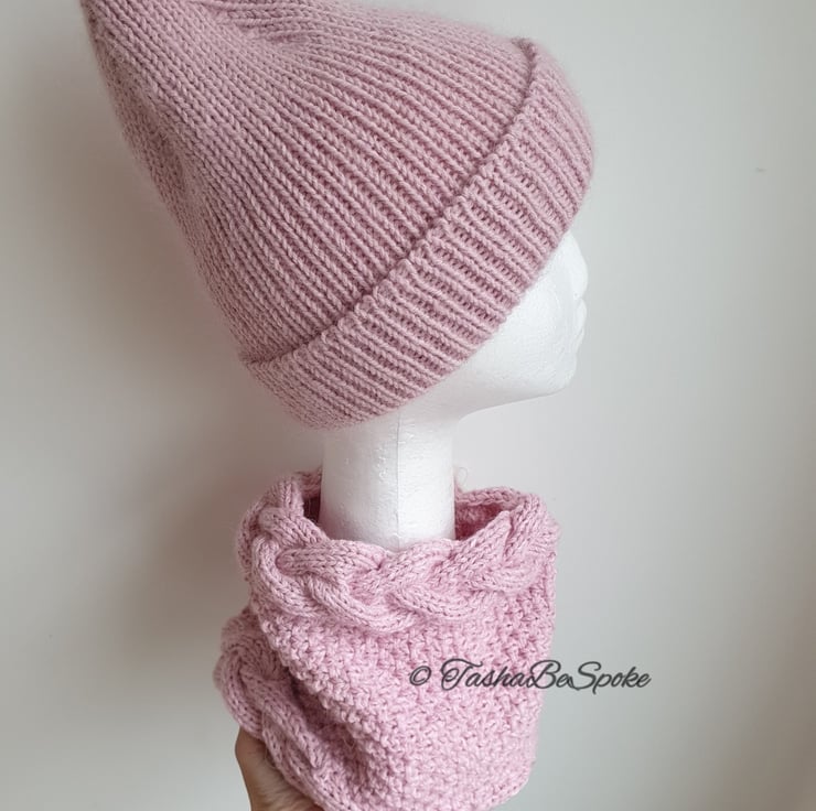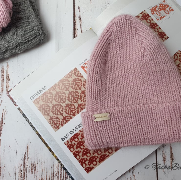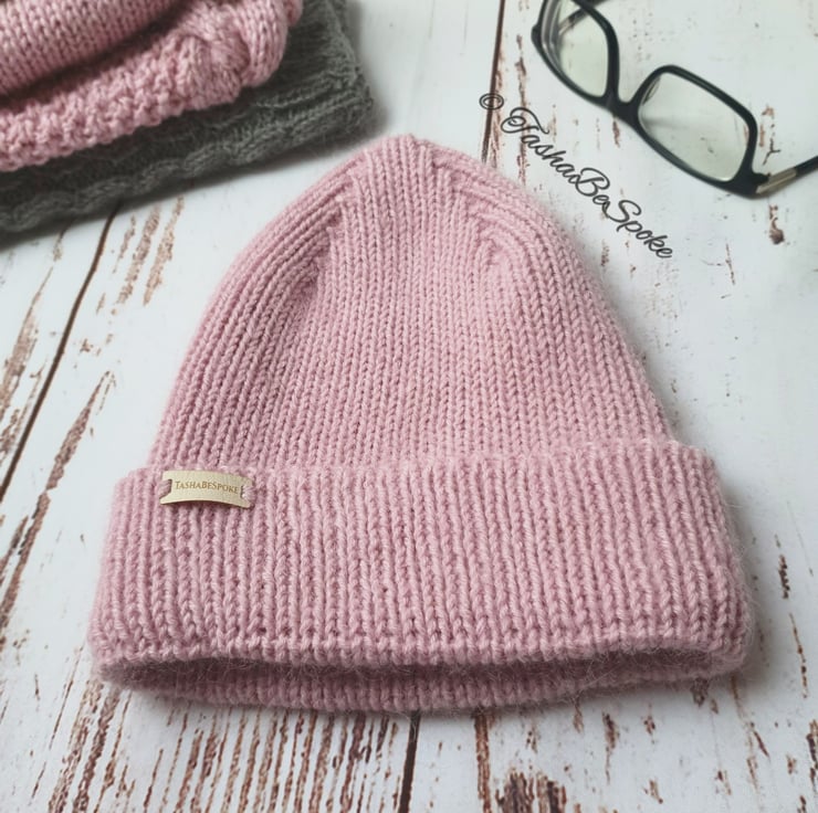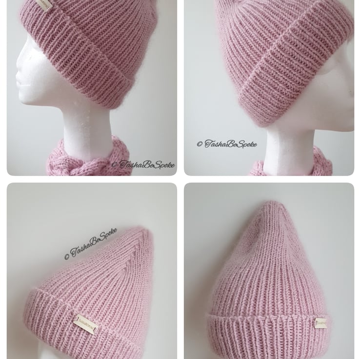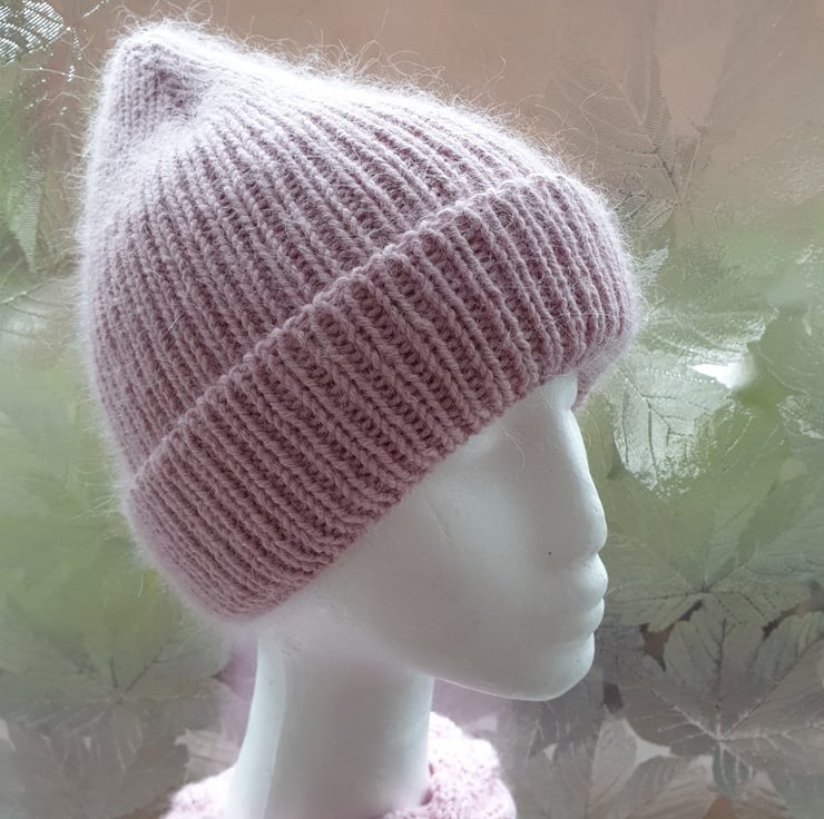 Hand knitted pink beanie, Fashion pointy beanie, Merino cotton mohair blend