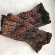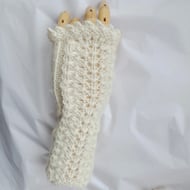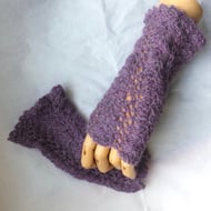 Hand knitted fingerless mitts made in a traditional lace stitch and soft warm red yarn with a touch of alpaca.