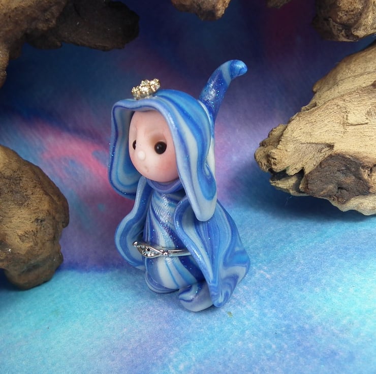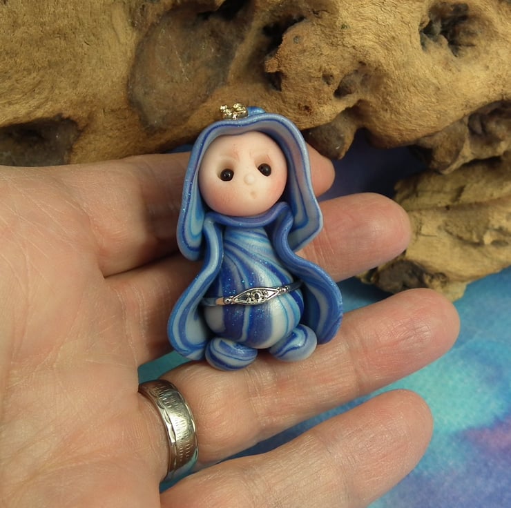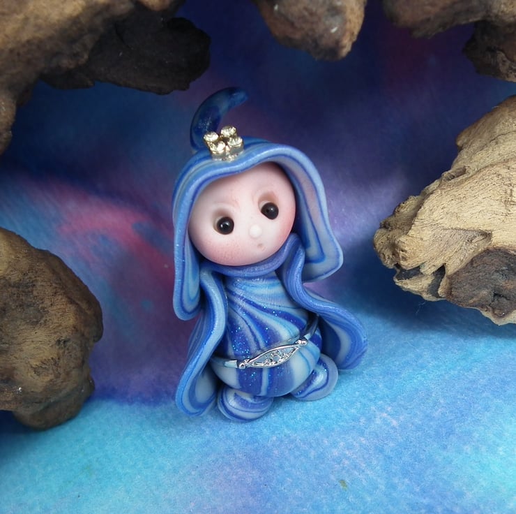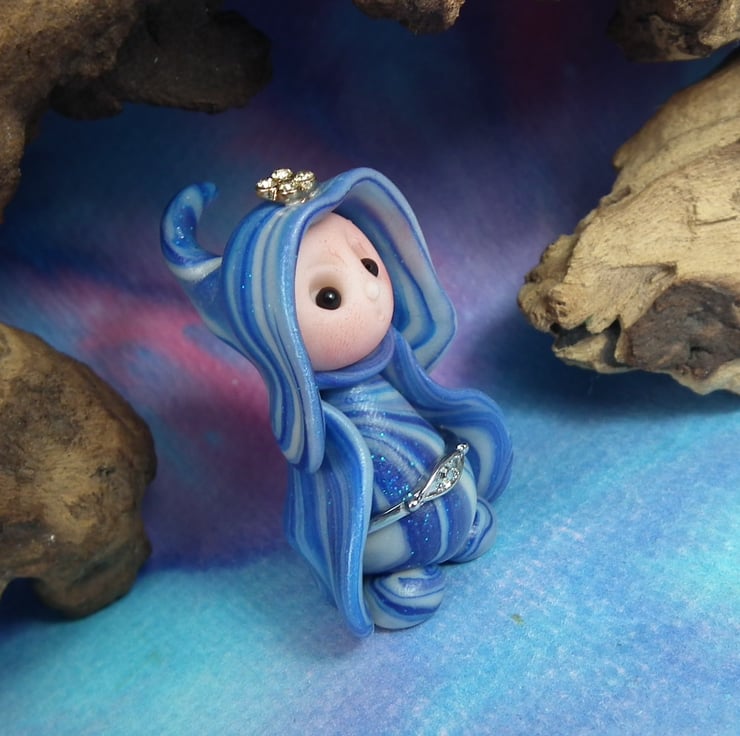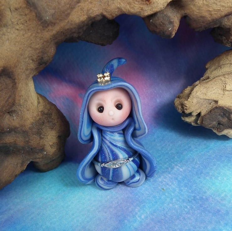 This is a 'one of a kind' creation having been entirely handmade without the use of moulds here at my studio on the Sussex Coast. Modelled with Prosculpt polymers, painted with heat set paints before sealing with lacquer, Orlah has sparkling black onyx eyes and variegated robes. Orlah the Gnome Maiden is just one and a half inches tall.