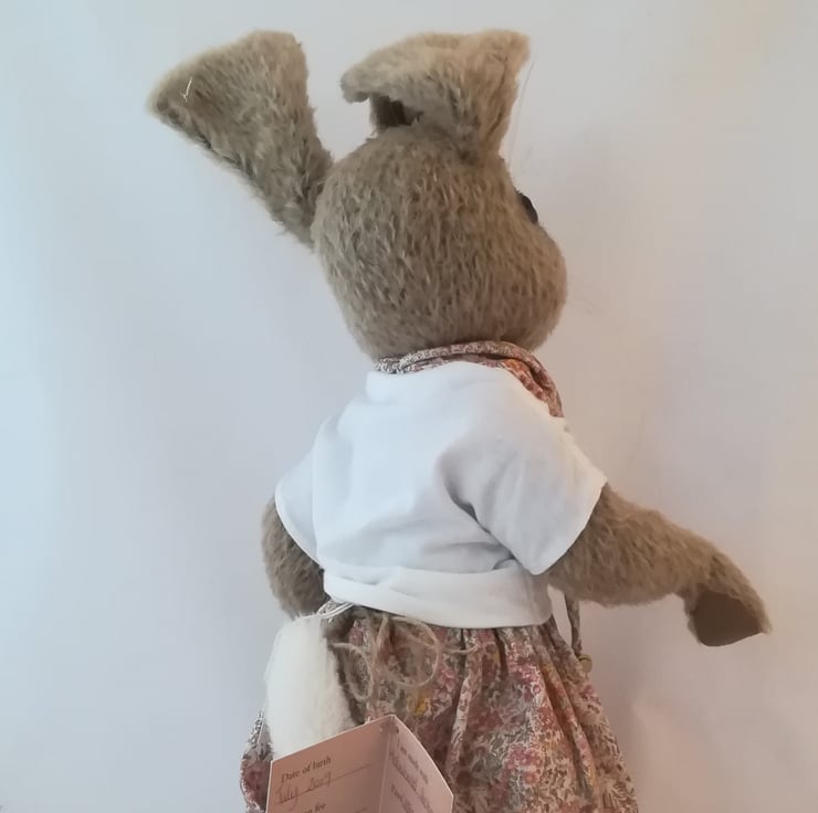 Handmade by Gill using only the finest materials available, mohair fabric, English glass eyes, quality polyester stuffing, ultra suede paw pads which are needle sculpted with hand tinted detail,