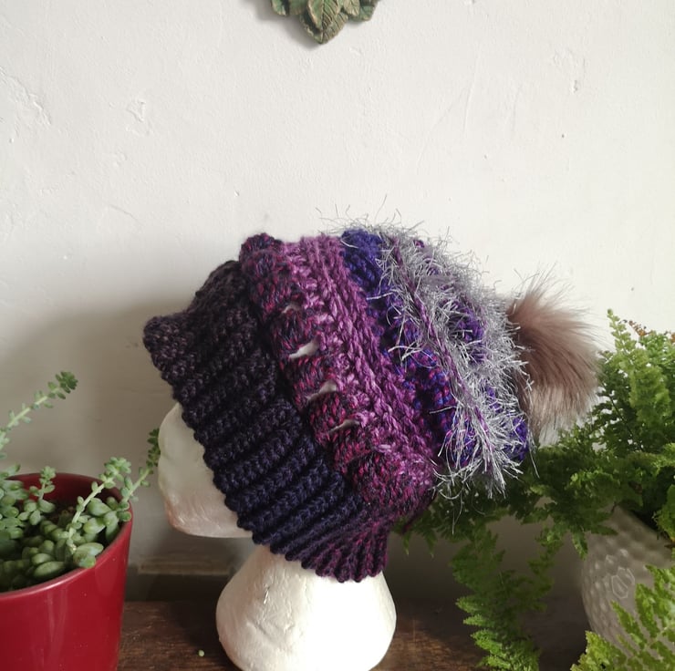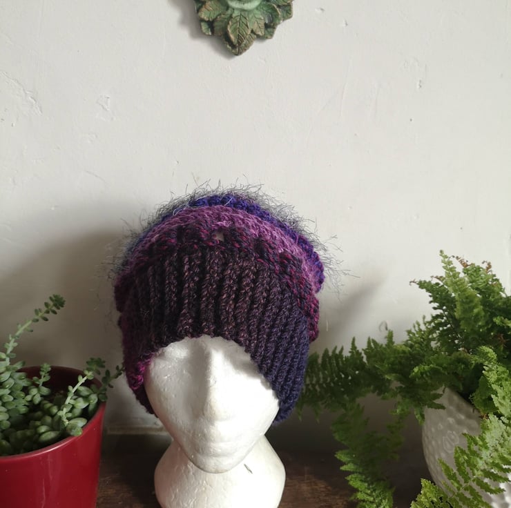 A delightfully whimsical beanie with added depth so you can really pull it low around your ears to keep you extra warm this winter. I make these beanies without a pattern and as such each one is unique.