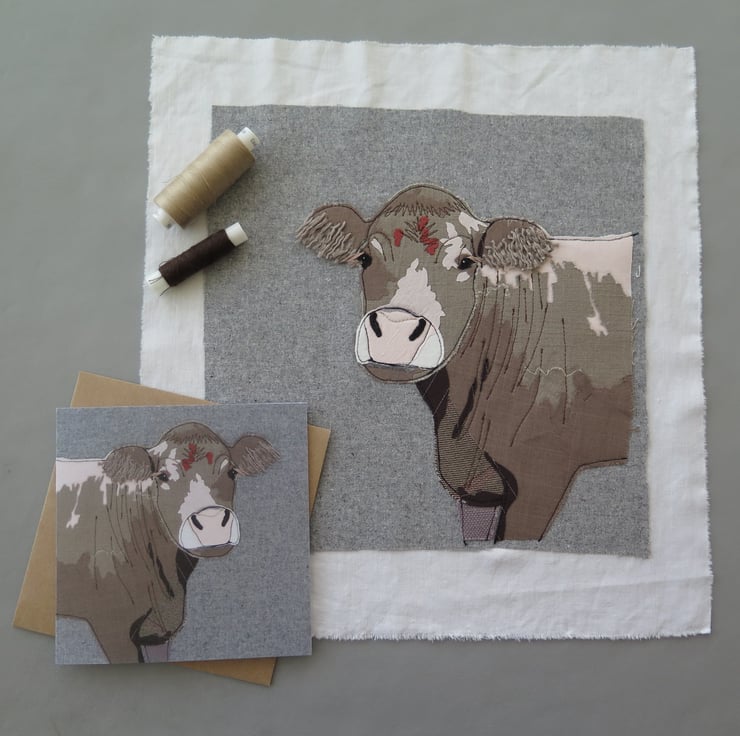 Original fabric appliqué designs which have been scanned, and then printed onto recycled card.