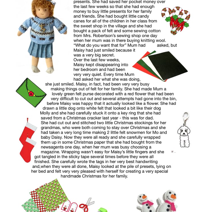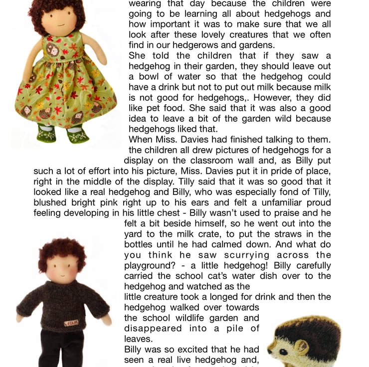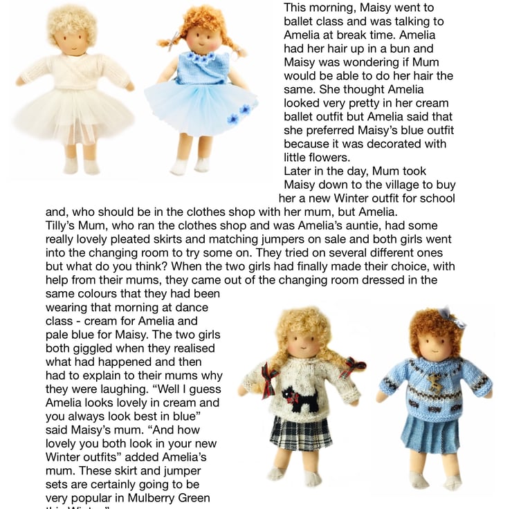 There are other children in Maisy’s class at school - Violet, Billy with his pet rabbit, Amber, Tilly, Rosie and her kittens, Amelia, Ruby, Marigold, Bobby with Max the dog, and the twins Oliver and Olivia, who have a puppy called Oscar. The dolls are all 26cm tall and baby Daisy is 16cm. Maisy and Mo love nothing more than having adventures with their friends. You can read about their adventures on my Facebook and Instagram pages - Maisy Muffin Rag Dolls and on my Mulberry Green Pinterest boards.