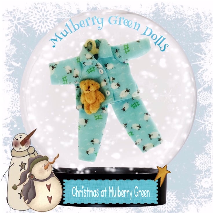 A cute little pair of cotton pyjamas to fit the Mulberry Green characters with a sleepy sheep print. The pyjamas come with a little tiny teddy, just big enough for Maisy and her friends. They come on a cute little wooden hanger.