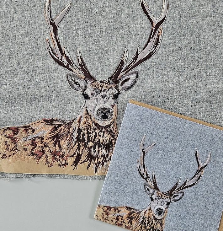 Original fabric appliqué design which has been scanned, and then printed onto recycled card.