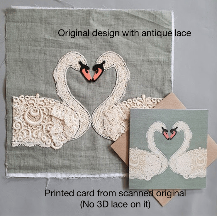 Please note - there is NO fabric or 3D lace on the card, it is a print of textile art