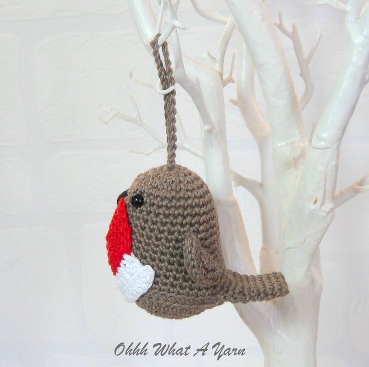 This cute little crochet robin can be used for a variety of things. They love to hang about on a twiggy tree, a Christmas tree or on your favourite bag.