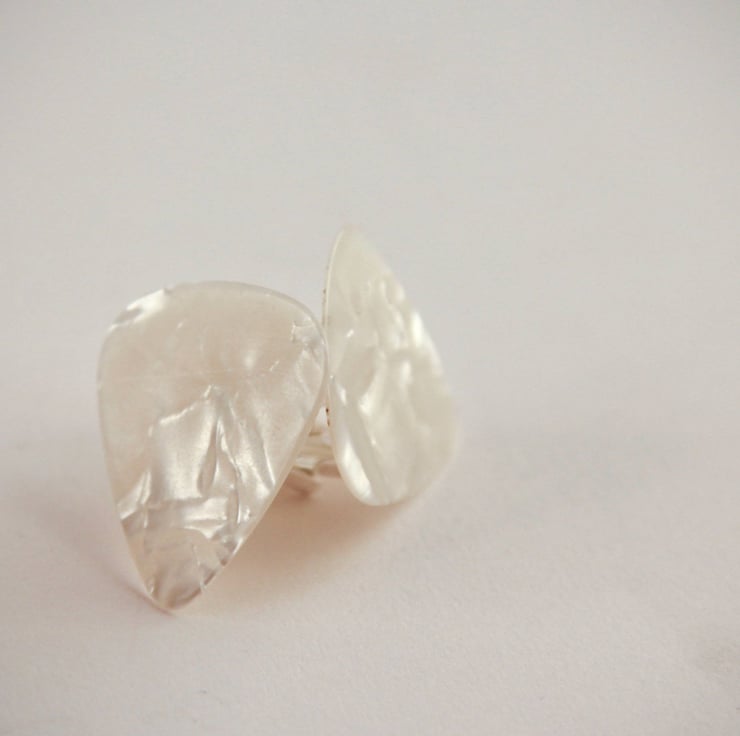 A pair of silver plated White mother of pearl effect plectrum Cufflinks .