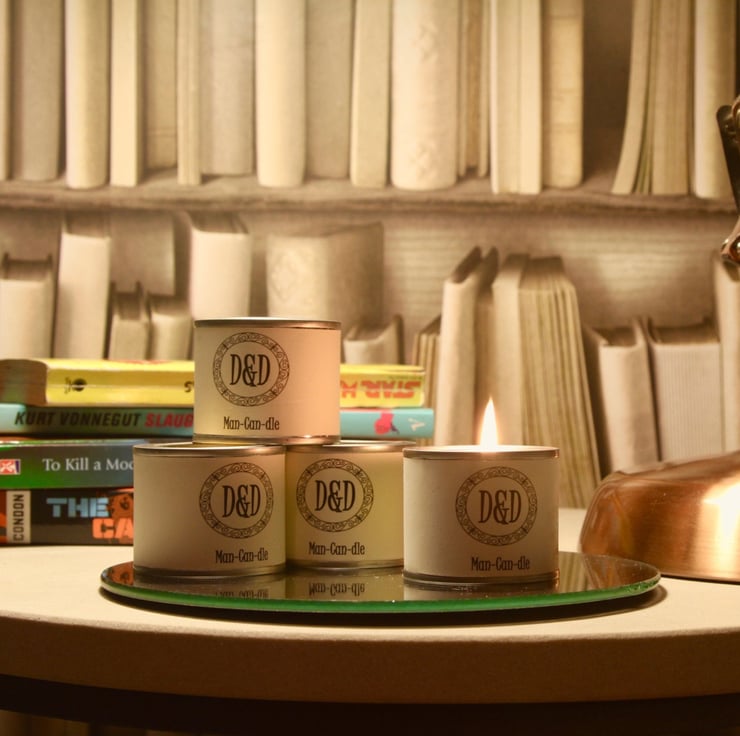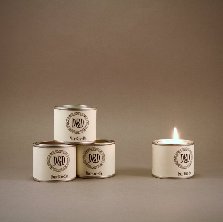 A more manly candle with a masculine scent made to look like a small pot of paint. A novelty present that smells yummy.