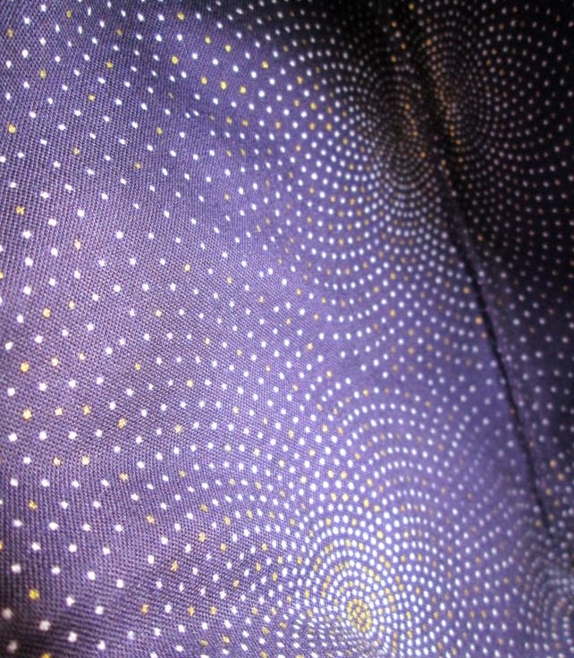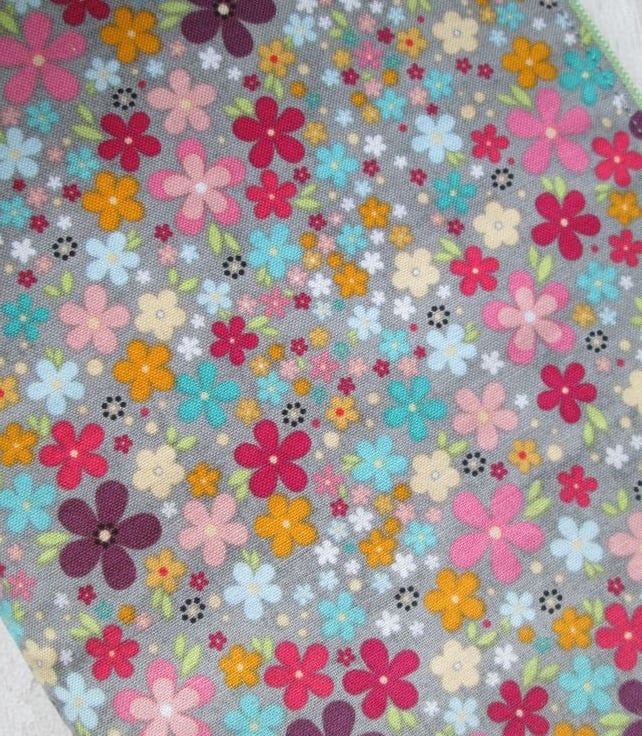I was so pleased when I realized I had just enough of this colourful floral print left to make this zip top bag. It's been very popular and is really bright and cheerful. I've teamed it with a pale green zip and a rich purple lining fabric patterned with swirls of white and metallic gold dots.