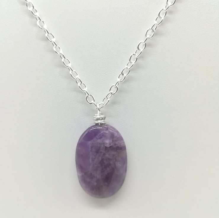 I've handcrafted for you a simple, but lovely wire wrapped - with silver fill wire - Amethyst pendant necklace.