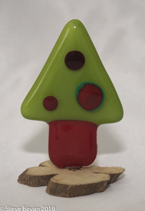 These stand-up trees are made in a similar way to our hanging Christmas Trees, which you can find elsewhere in our shop. The differences are that we sandwich a loop of wire between the glass making up the trunk of the tree to provide a support, and fix the completed tree onto a pre-drilled wooden base.