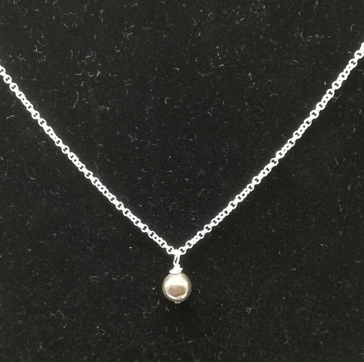 The silver plated chain, plus the silver plated 1/2" barrel clasp makes for an approximately 18" long pendant necklace. The bead is 8mm.