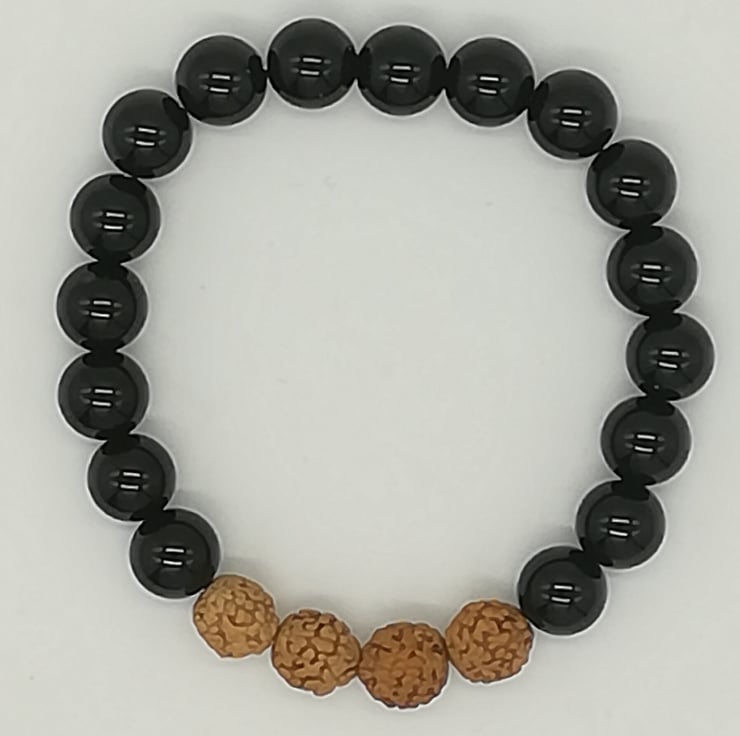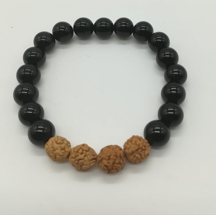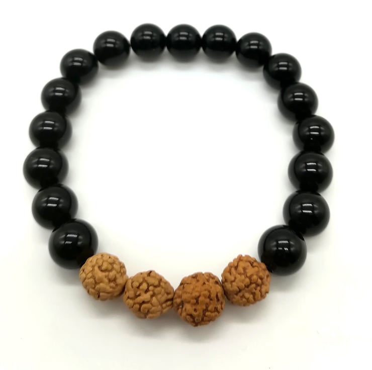 Handmade Black Agate Rudraksha bead Stack Bracelet clarity and good fortune
