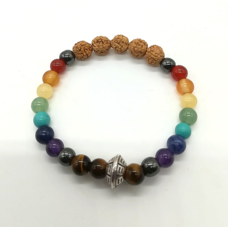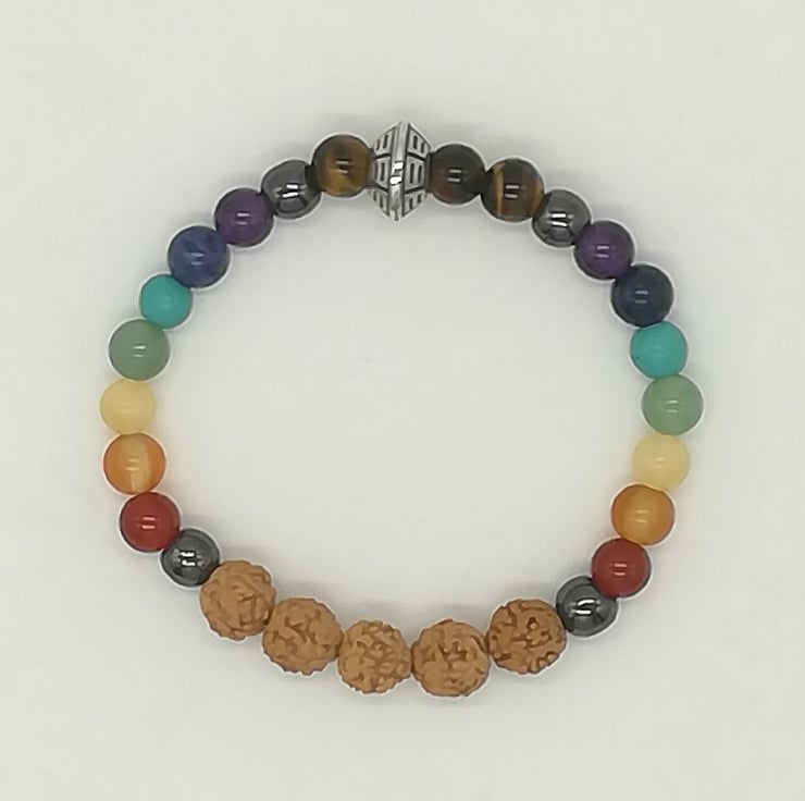 Handmade Chakra gemstones & Rudraksha bead Stack Bracelet - energising balance