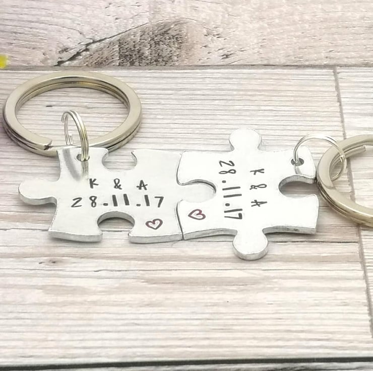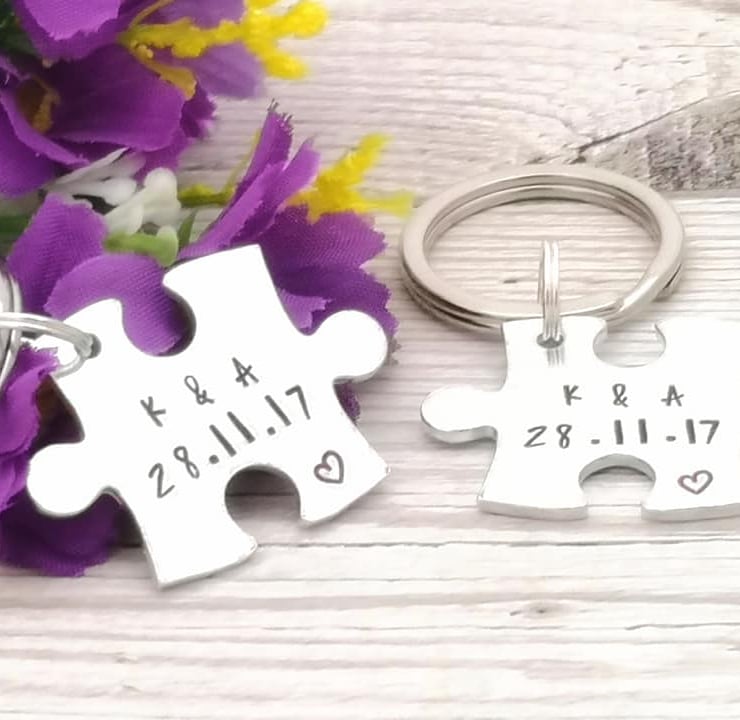 This cute set of two interlocking puzzle piece keyrings make a lovely couples gift, or special gift for your best friend. Personalise each keyring with initials and a special date.