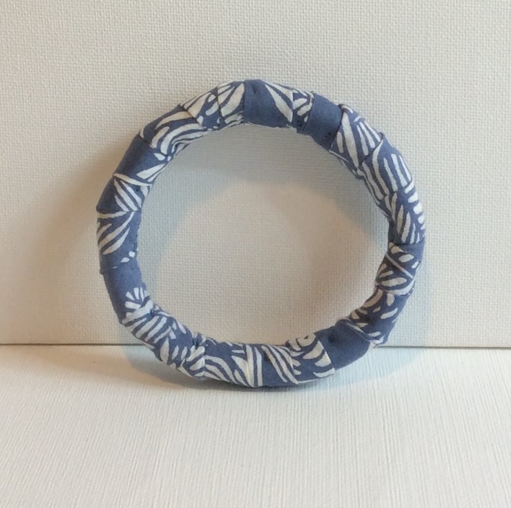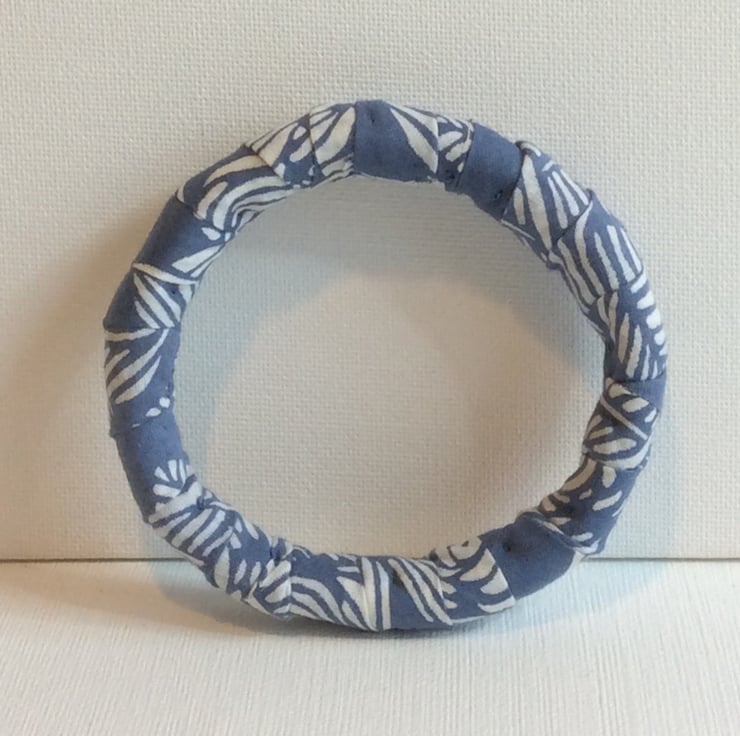 Bangle, bracelet, fabric wrapped, slip on, blue and white