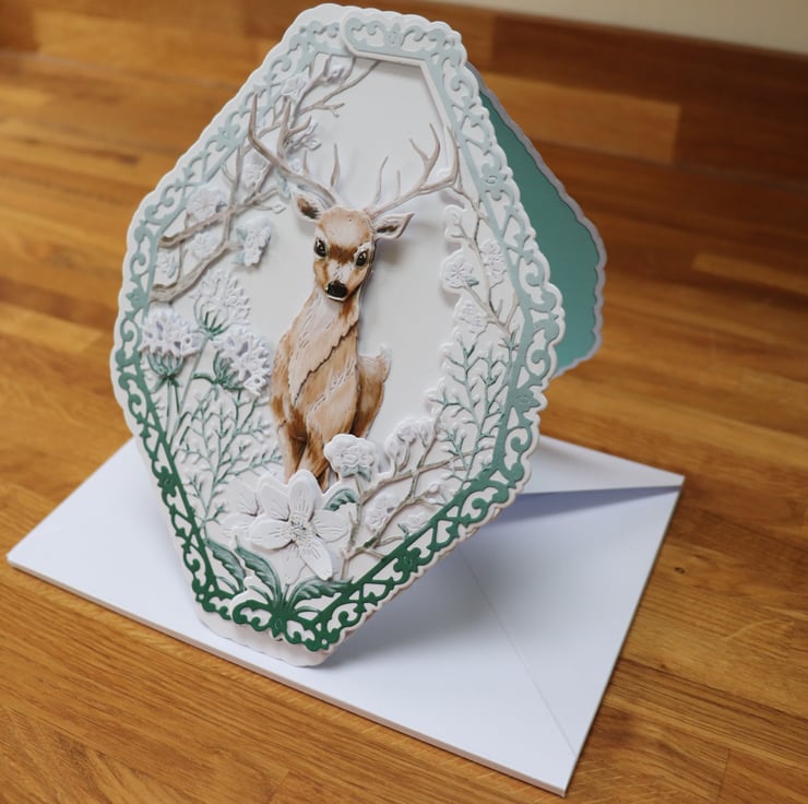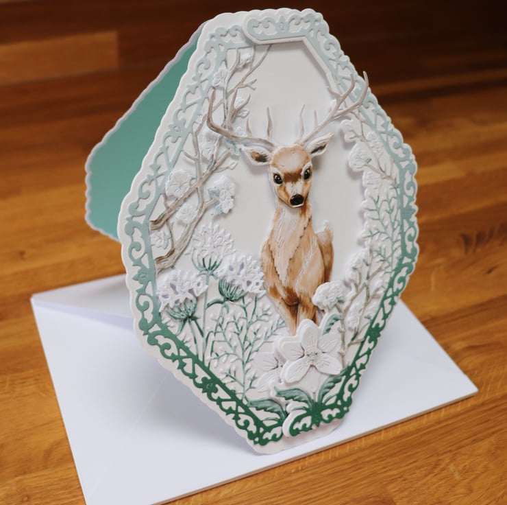 The front of this card has a beautiful woodland scene that is full of decoupage, with the very majestic Stag in the middle, this card will be great for birthdays , fathers day, get well soon etc.