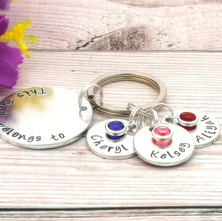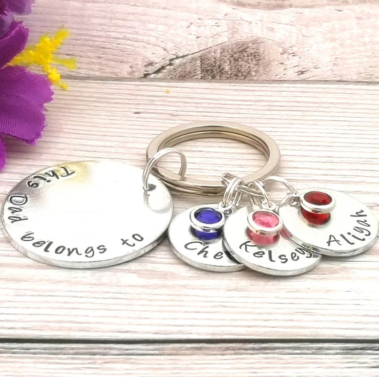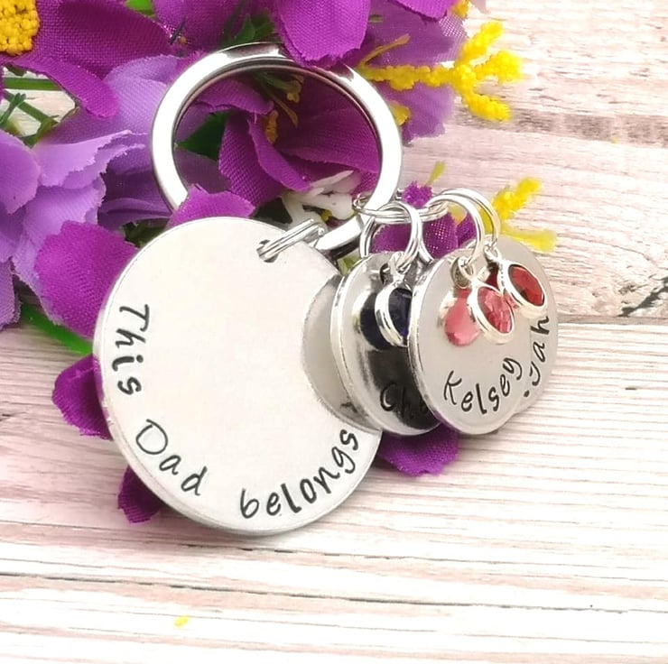 This Dad Belongs To Keyring With Birthstone Crystals - Personalised Dad Birthday