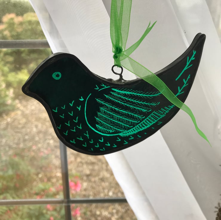 This stained glass bird is hand made by me in my Yorkshire workshop.