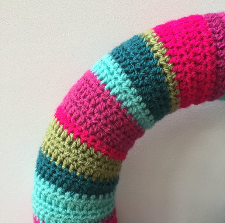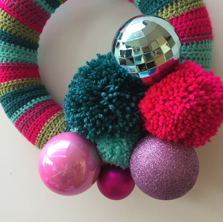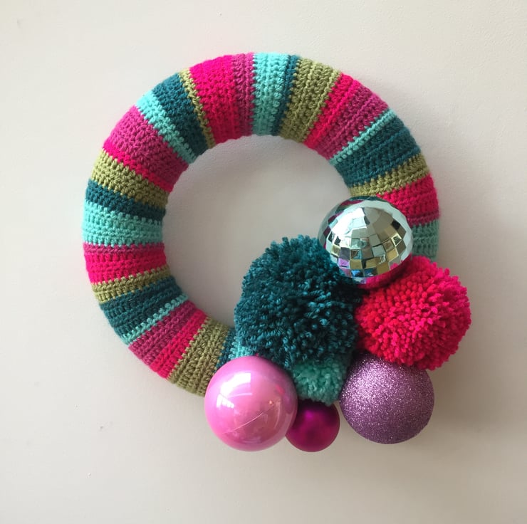 Make your home merry and bright this Christmas with a colourful handmade crochet wreath!