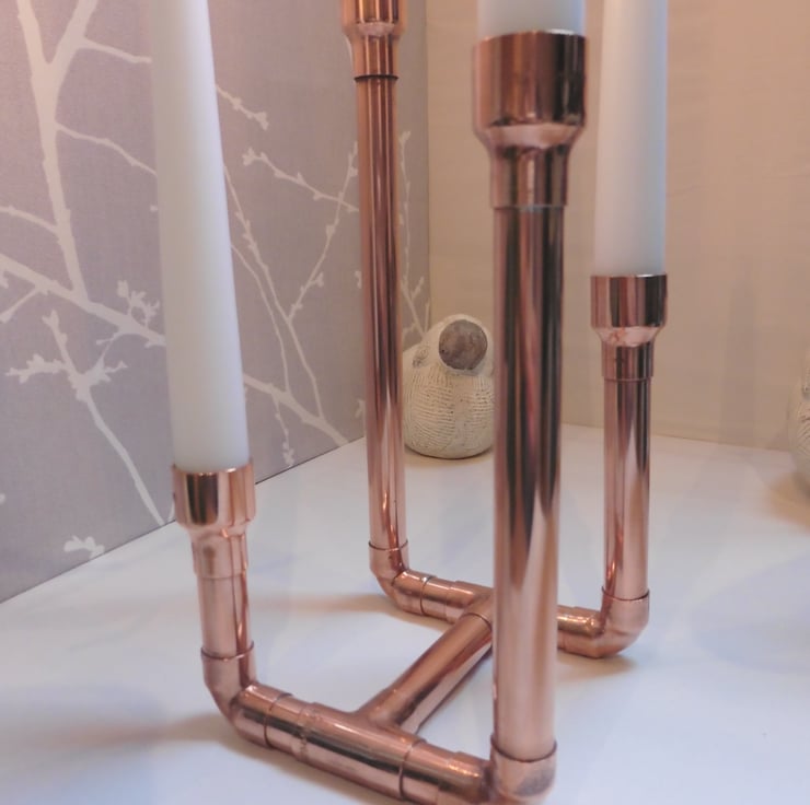 Four stem candle holder made of recycled copper pipe to add a contemporary and industrial feel to your home. Joints have been soldered to ensure that the base is more stable.