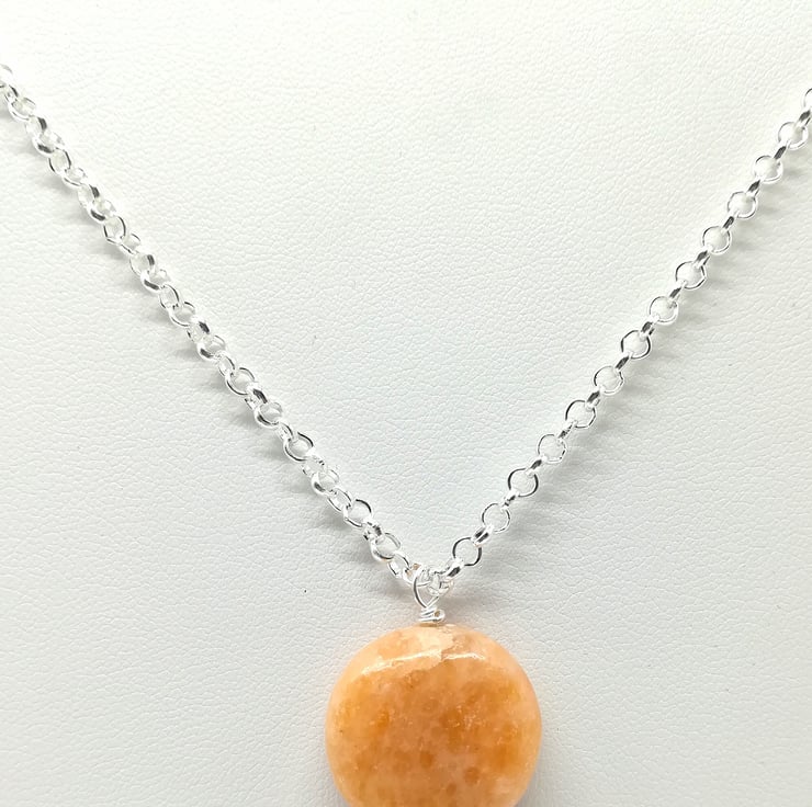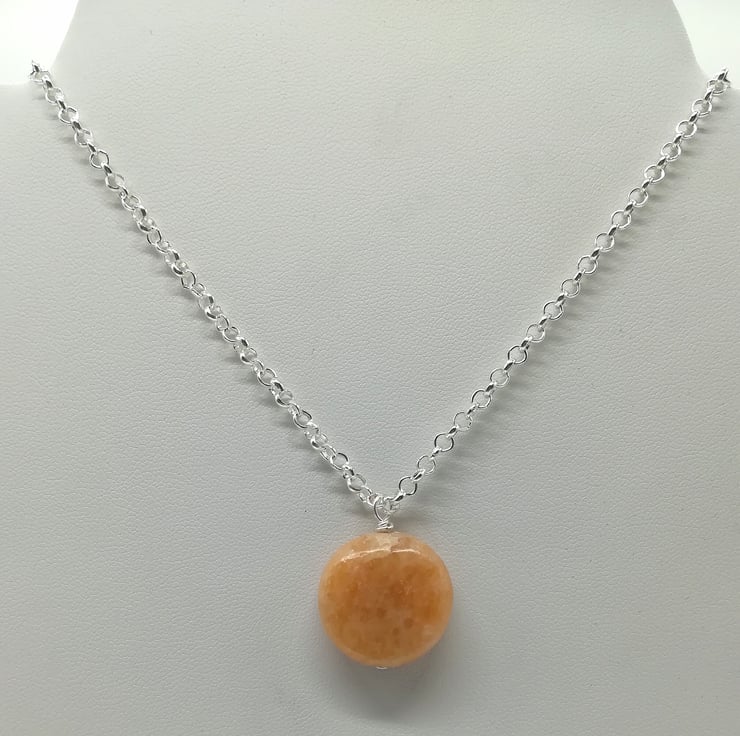 I've handcrafted for you a simple, but lovely wire wrapped peach calcite pendant necklace.