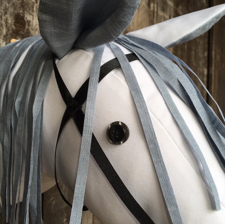 He is mainly white but has a grey mane and grey inner ears.