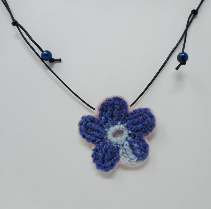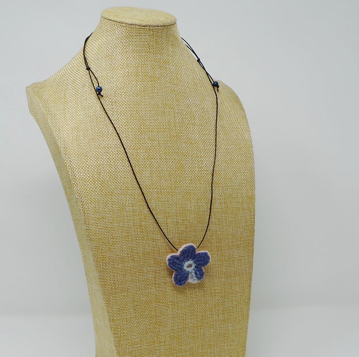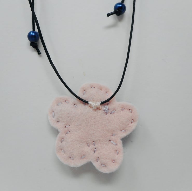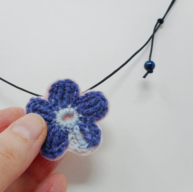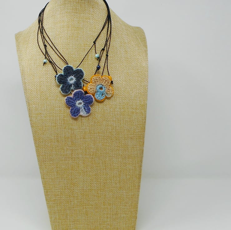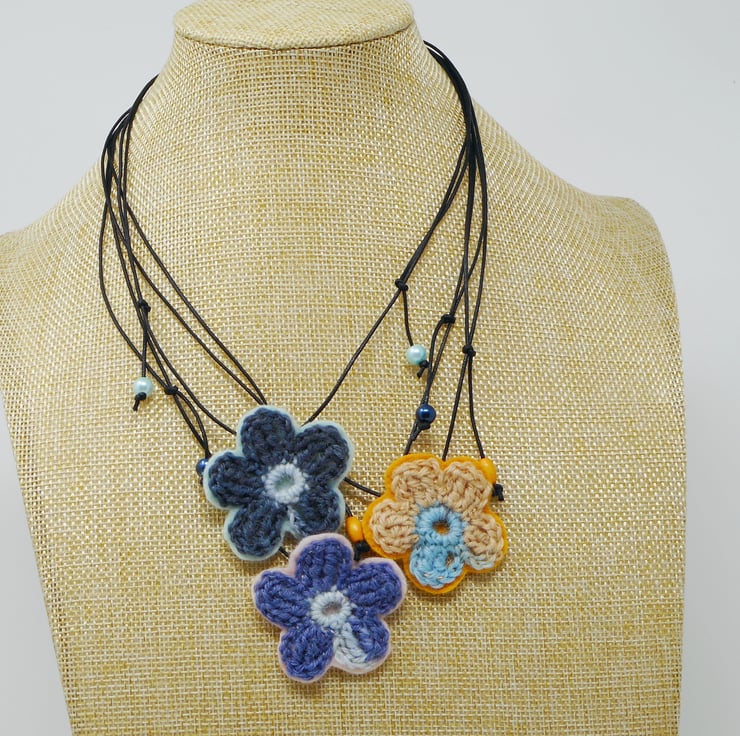 Cherie single blossom yarn and felt necklace. Lightweight and metal free.