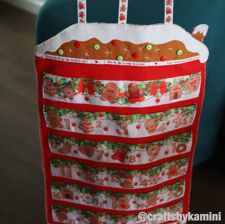 The felt calendar is backed with red cotton.