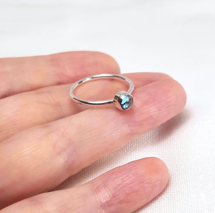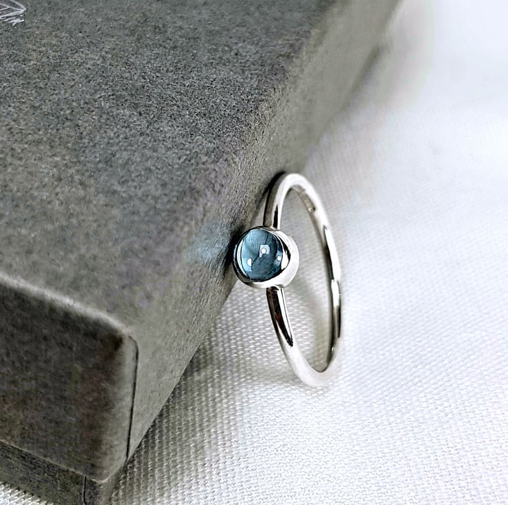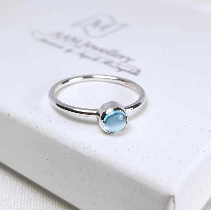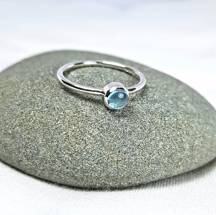 Sterling silver topaz ring, handmade using 1.5mm recycled sterling silver round wire and featuring a 5mm genuine swiss blue topaz.