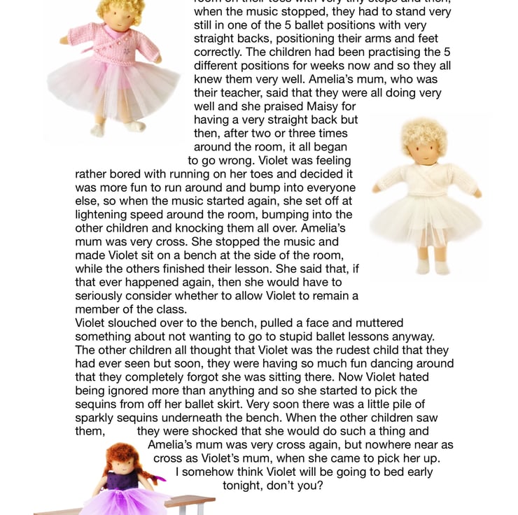 There are other children in Maisy’s class at Mulberry Green Infants’School - Violet, Billy, Amber, Rosie, Tilly, Amelia, Ruby, Marigold and twins Oliver and Olivia, who have a puppy called Oscar. The children are all 26cm tall, Baby Daisy is 16cm and the dogs are just 8cm. Maisy and Mo love nothing more than having adventures with their friends.