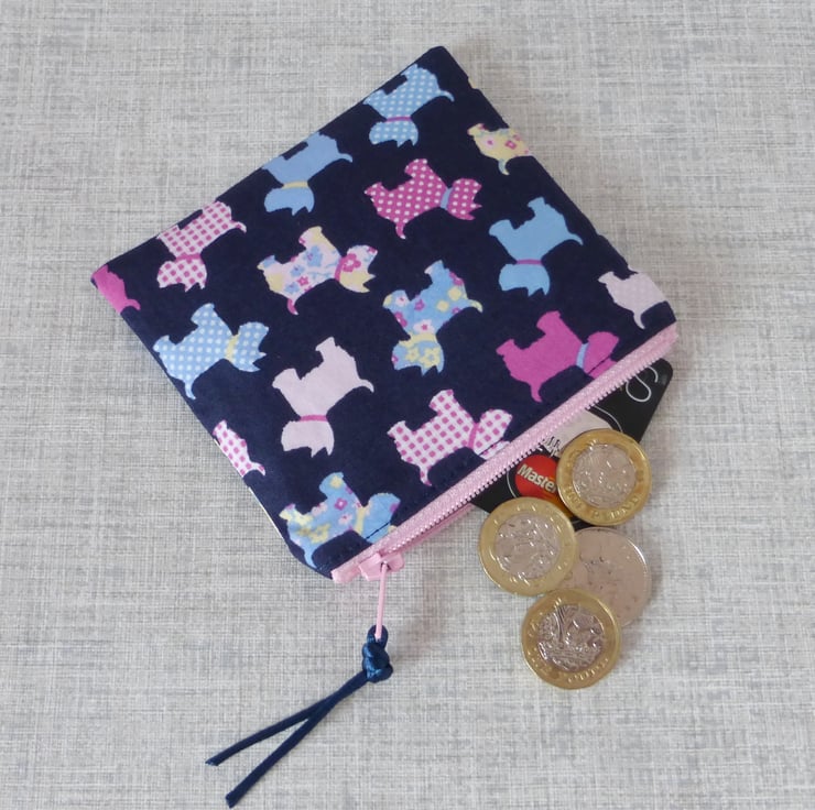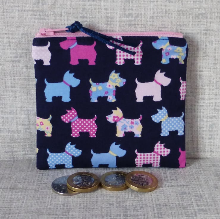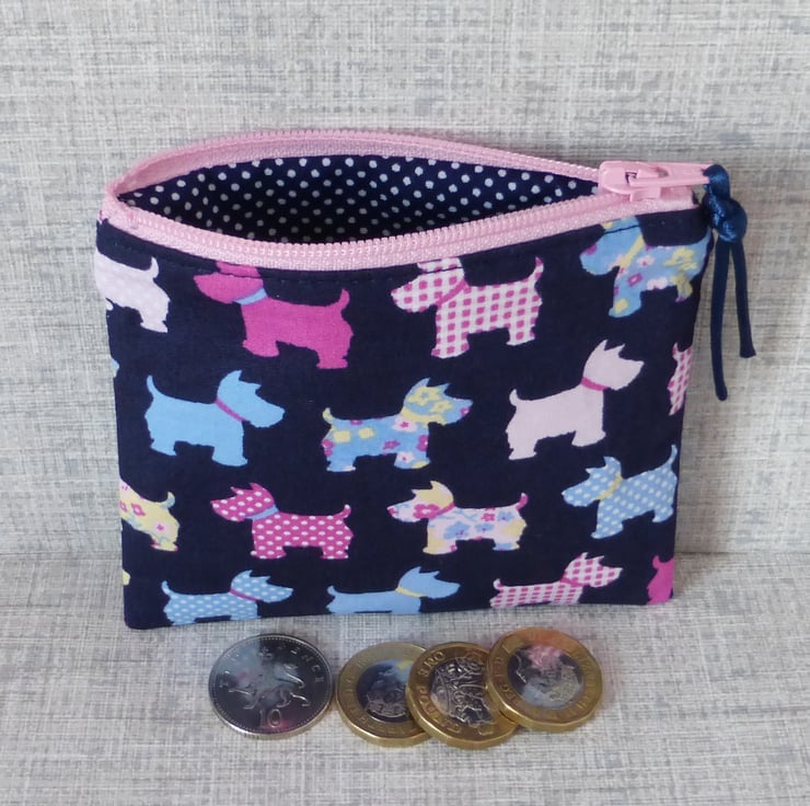 A small coin purse made from 100% cotton fabric..