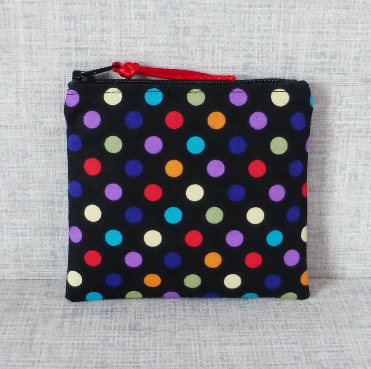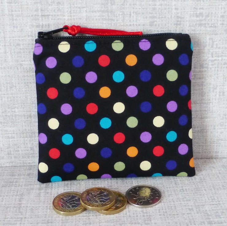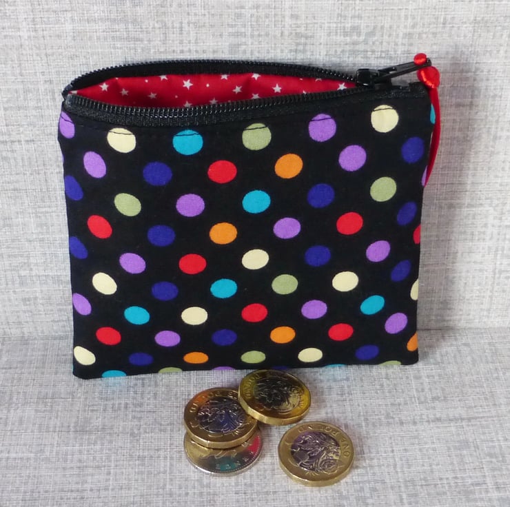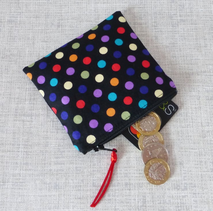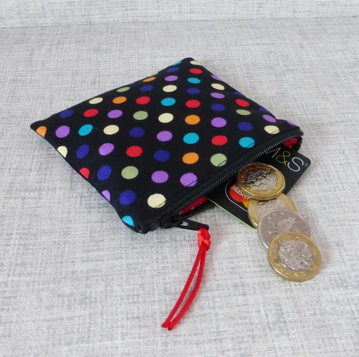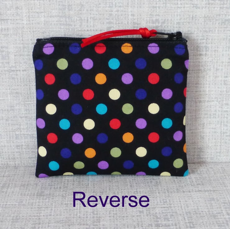 A small coin purse made from 100% cotton fabric..