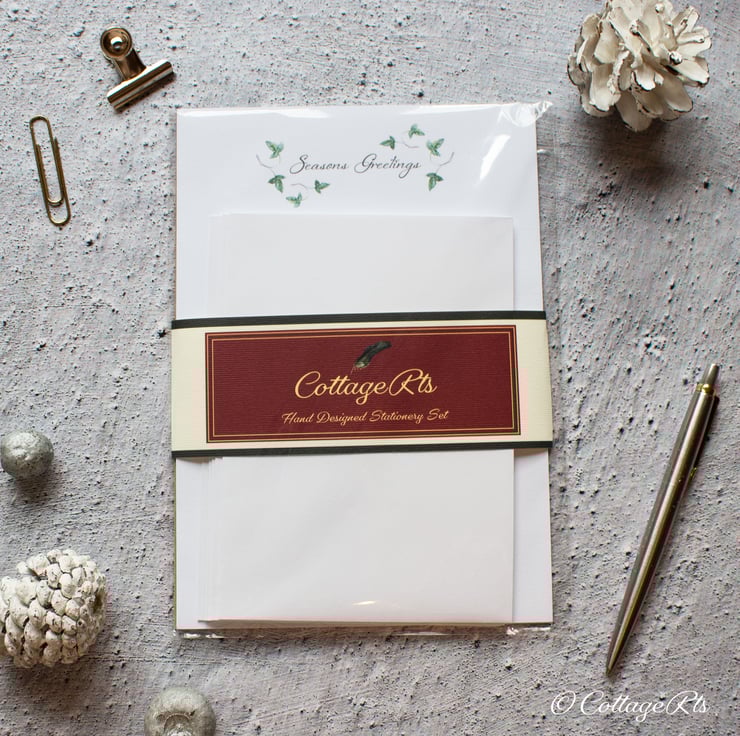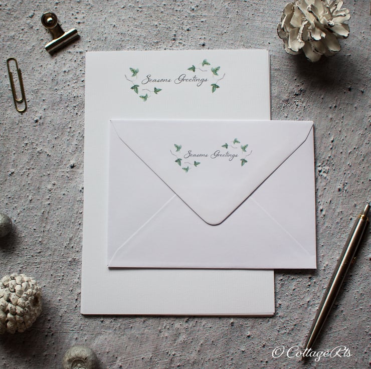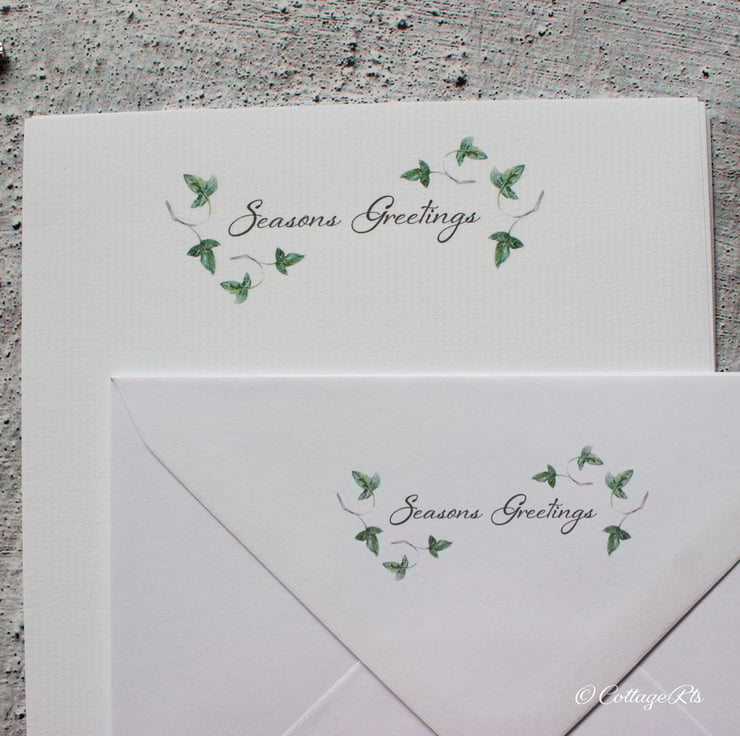 - 10 sheets of laid A5 letter writing paper with the Wild Ivy leaf design and 'Seasons Greetings' heading the paper.